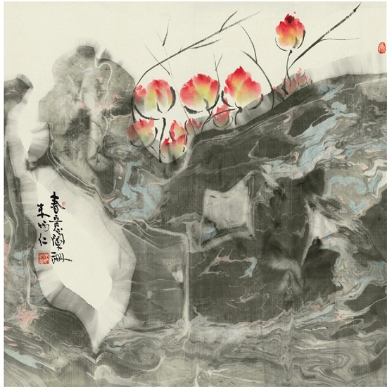 朱炳仁 湖画无画系列·春意 100×100cm
