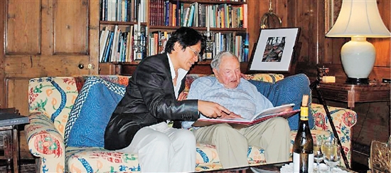 画家马欣乐与大卫·洛克菲勒亲密交谈