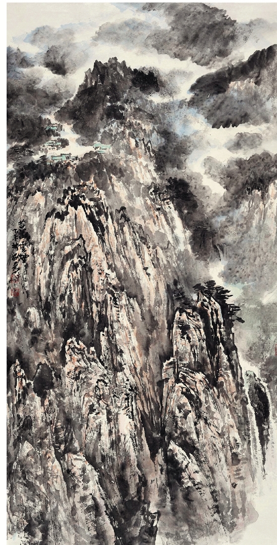 刘岩石 黄山云烟 138×70cm