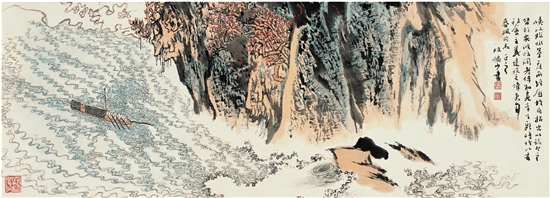 陆俨少 峡江险水 设色纸本 镜片 34.5×97cm