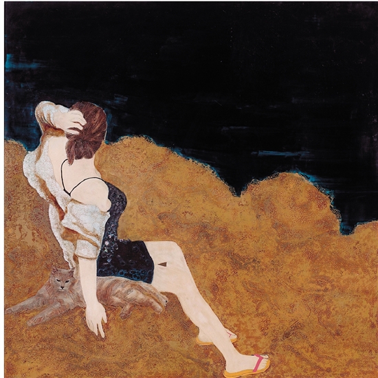 刘晓琛 猫女·邂逅 100×100cm 漆画