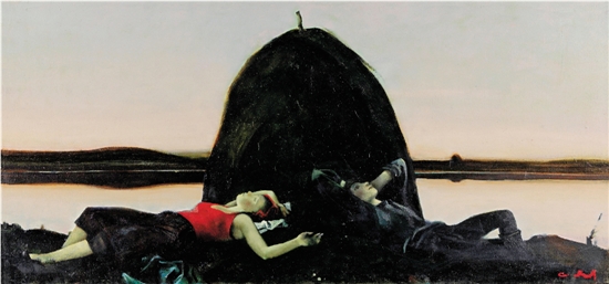 安德烈·梅尔尼科夫(俄罗斯) 静 66×140cm 布面油彩 1987年(图片选自“美美与共——中国美术馆藏国际艺术作品展”)