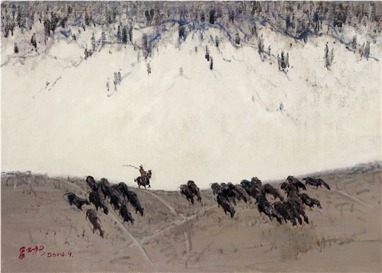妥木斯 雪山牧场 100×140cm 油画·麻布 2014年(选自“中国精神:第四届中国油画进京展”)