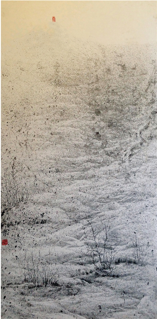 王晨荣(上海市新晖中学) 大约在冬季之九 138×69 国画