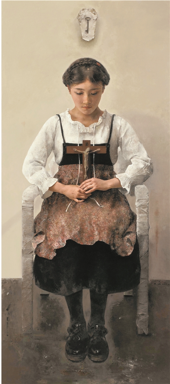 郭润文 莎拉的钥匙 180×80cm 布面油画 2017年(选自“中国精神——第四届中国油画邀请展”)