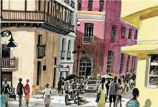 李昆武 市中心卡马圭 21.2×37.8cm 墨水 2017年