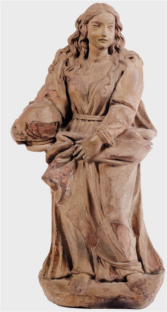 ▲安娜·莫兰蒂·曼佐利尼(意大利) 一位抱着陶罐的女人 58×28×21cm 赤陶雕塑 18世纪