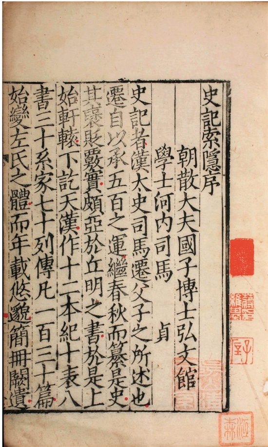 苏州博物馆藏国家珍贵古籍明嘉靖四年至六年(1525-1527)王延喆刻本《史记》