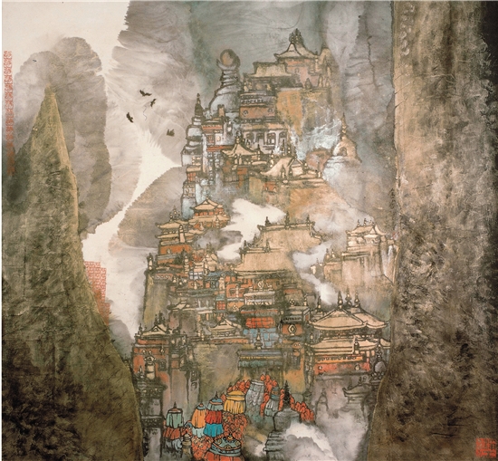 陆秀竞 金谷圣寺 190×180cm 纸本设色 1986年