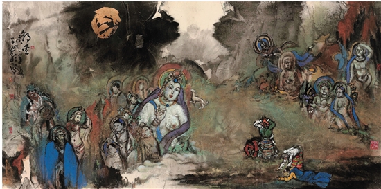 陆秀竞 朝圣 122×244cm 纸本设色 2013年
