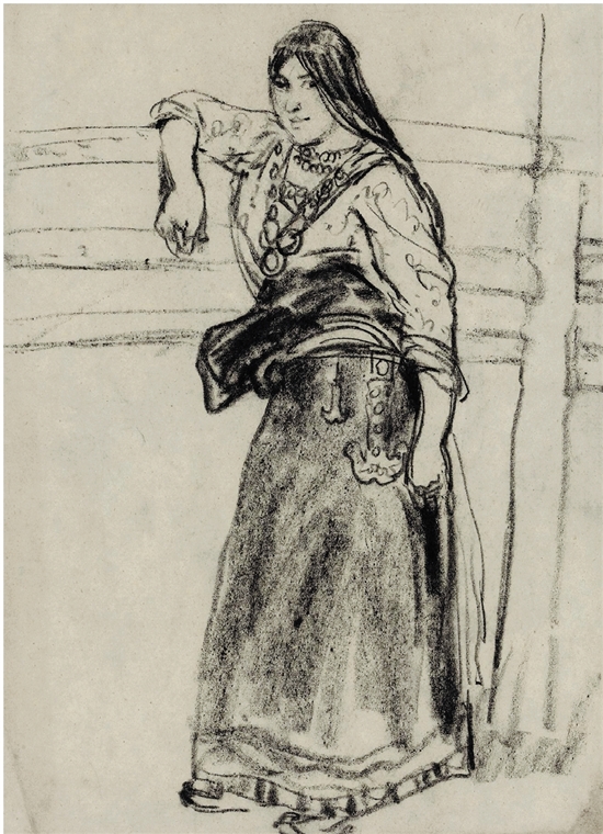 李震坚 倚栏藏女速写 1962年 浙江美术馆藏