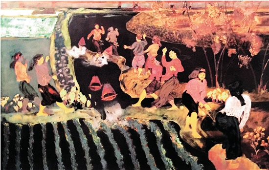 陈文谨 戽水 磨漆画 1958年 越南美术博物馆藏