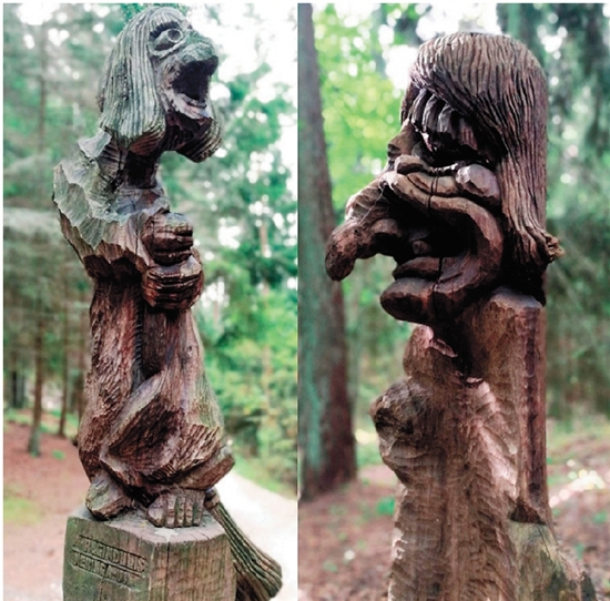 女巫山木雕 狰狞的女巫形象与面部特写