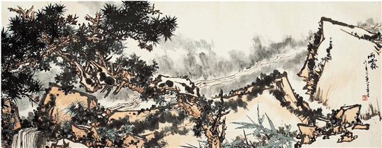 潘天寿 雨霁图卷 141×363.3cm 中国画 1962年
