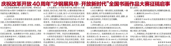 庆祝改革开放40周年“沙钢展风华·开放新时代”全国书画作品大赛征稿启事