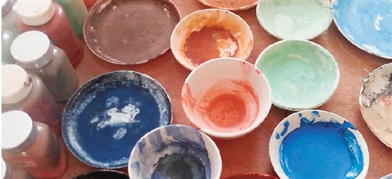 图6 根据壁画现状临摹需要调制天然矿物色