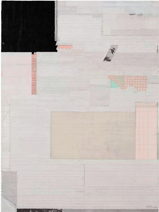 ▲梁铨 潇湘八景之2016-8 色、墨、宣纸拼贴 120×90cm 2016年