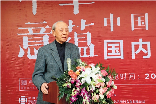 “中华意蕴——中国油画艺术国际巡展”国内汇报展(威海站)开幕式现场,詹建俊先生致辞