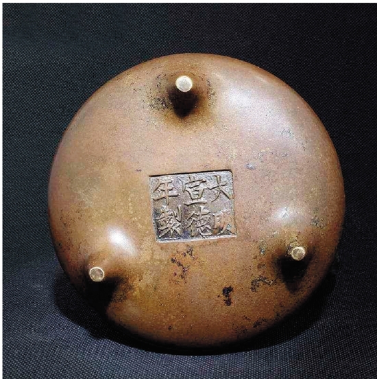 老铜香炉 大明宣德年制款带原配红木底座