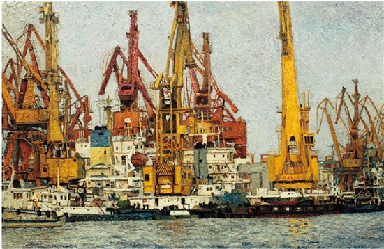 胡启宇(成人) 黄埔港之晨 油画 92×140cm