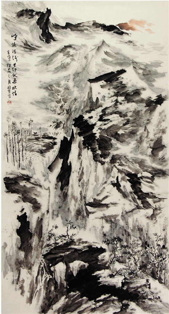 张国夫 峰拥深浅去 起伏弄晚晴 97×180cm
