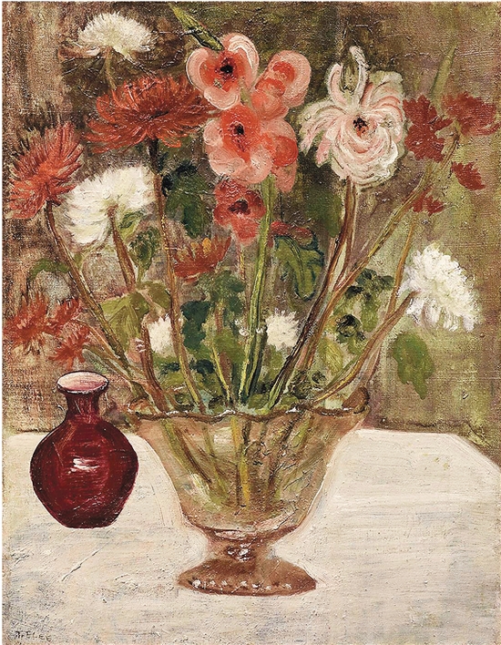 李铁夫 菊花(红瓶之二) 布面油彩 52.5×41cm 1930-1940年
