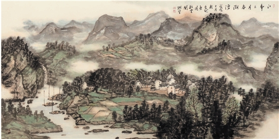 程翔宇 江南三月春潮涌 68×136cm 2018年