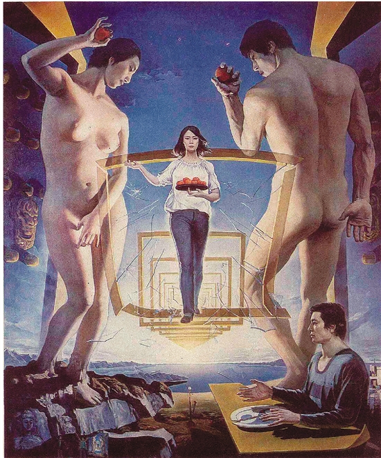 孟禄丁 在新时代·亚当夏娃的启示 196×164cm 油画 1985年