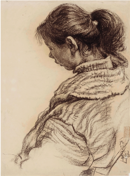 孟禄丁 头像 54×39cm 纸本炭笔 1982年
