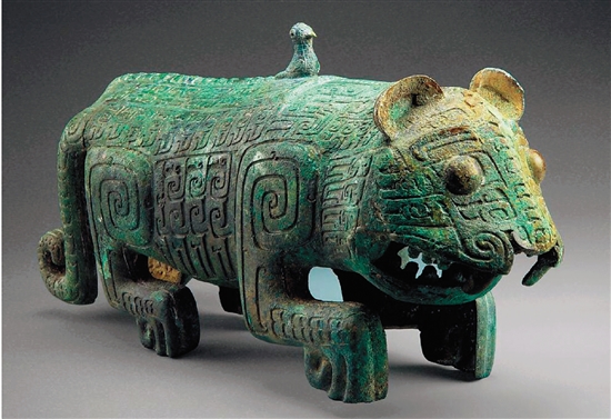 商(前16世纪-前11世纪中期) 伏鸟双尾铜卧虎