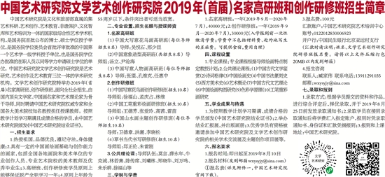 中国艺术研究院文学艺术创作研究院2019年(首届)名家高研班和创作研修班招生简章