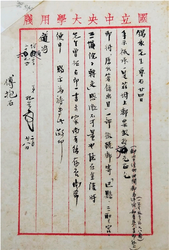 南京大学藏傅抱石致锡永信札