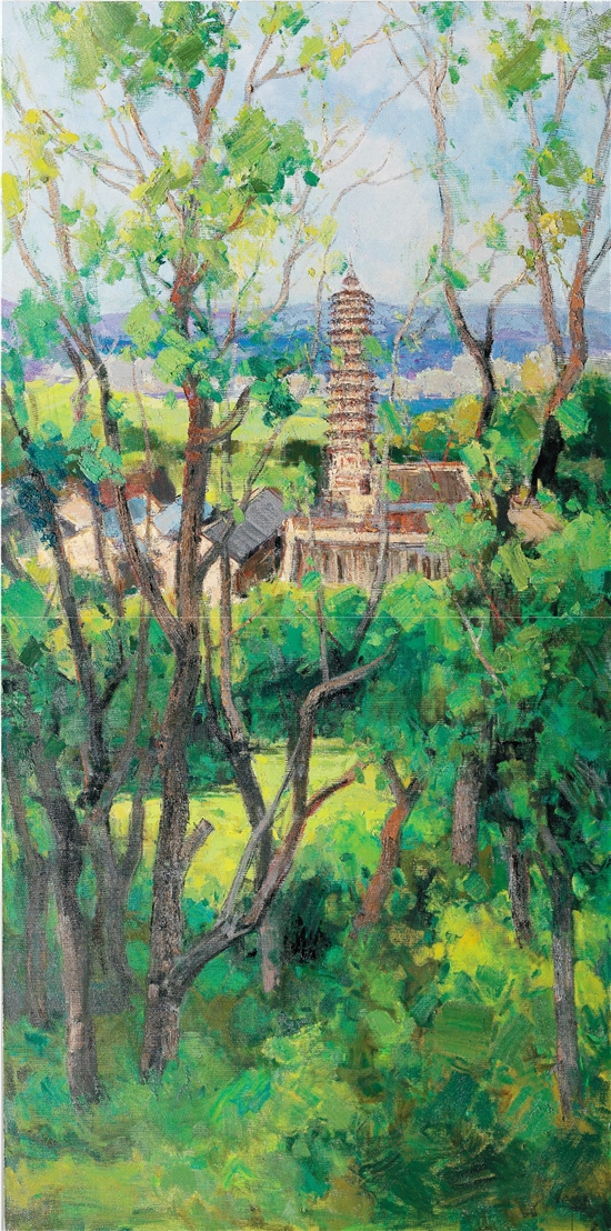 雷波 庄重 京华四季之燃灯夏茂 300×150cm 布面油画 2019年