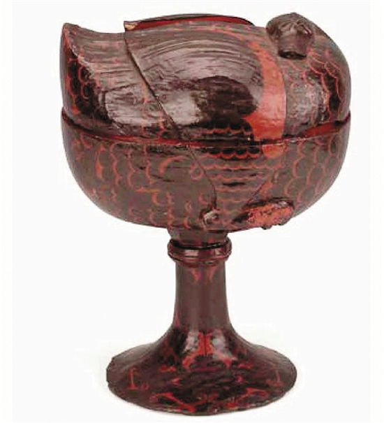 雕刻彩绘鸳鸯漆豆 战国(公元前475-前221年) 荆州博物馆藏
