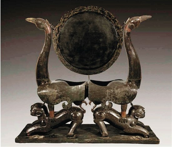 彩绘虎座鸟架鼓 战国(公元前475-前221年) 荆州博物馆藏