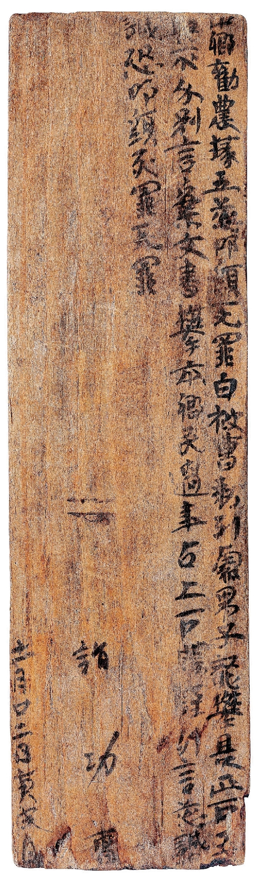 ▼中乡劝农掾五葱白为列处男子龙攀是正户民事木牍 24.2×6.8cm 长沙简牍博物馆藏