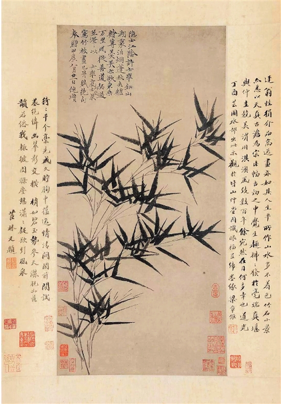 元 倪瓒 墨竹图 罗纹纸本 立轴 66.5×32cm 1364年作