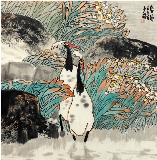 李权 春萌 68x68cm 中国画 2019年