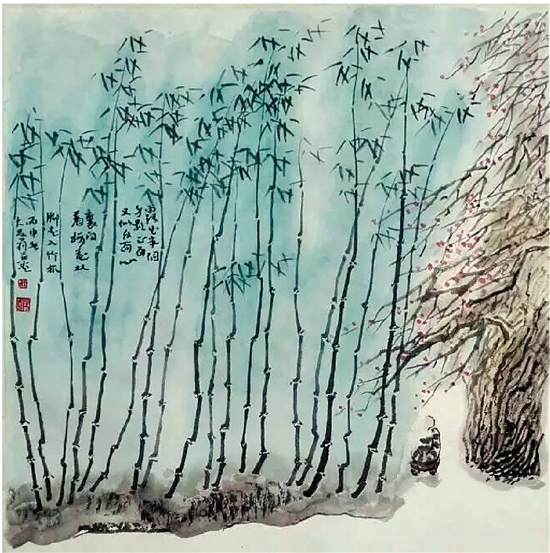 蒋天耕 《正反》露出半个身影,正面又似反面。心里想着桃花,脚步走向竹林