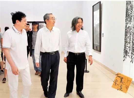 全国政协副主席马飚观看陈军画展,中国美术馆馆长吴为山陪同