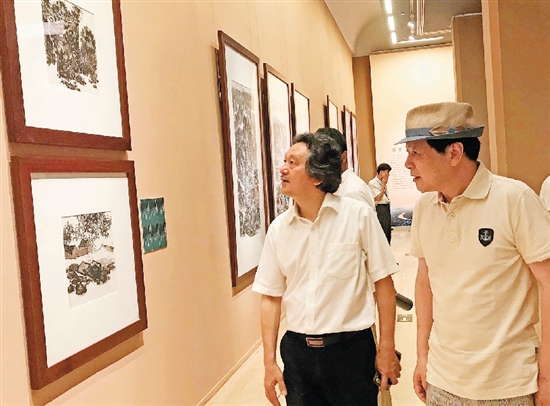 中国美术家协会分党组成员、秘书长马锋辉观看陈军画展