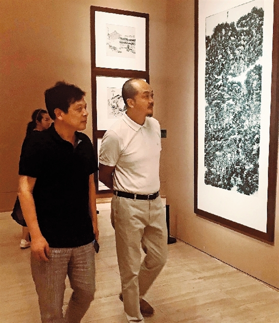 中国美协陶瓷艺委会主任白明参观陈军画展