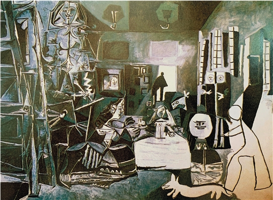 毕加索的《宫娥》就是利用“黑——白——黑——白”构图的夸张变化,使之比原作更具有形式美感。