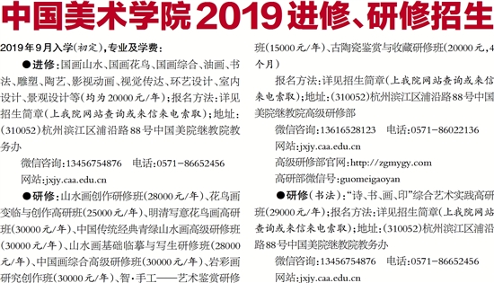 ●进修:国画山水、国画花鸟、国画综合、油画、书法、雕塑、陶艺、影视动画、视觉传达、环艺设计、室内设计、景观设计等(均为20000元/年);报名方法:详见招生简章(上我院网站查询或来信来电索取);地址:(310052)杭州滨江区浦沿路88号中国美院继教院教务办