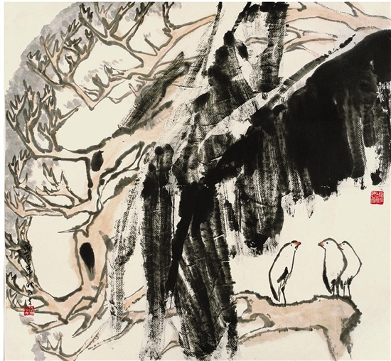 隋易夫 蕉阴息鸟 78×84cm 1988年