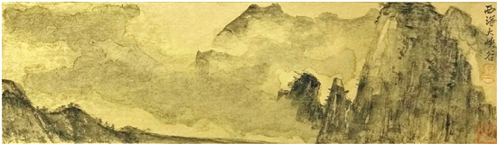 齐飞 西海大峡谷 12×34cm 金笺水墨