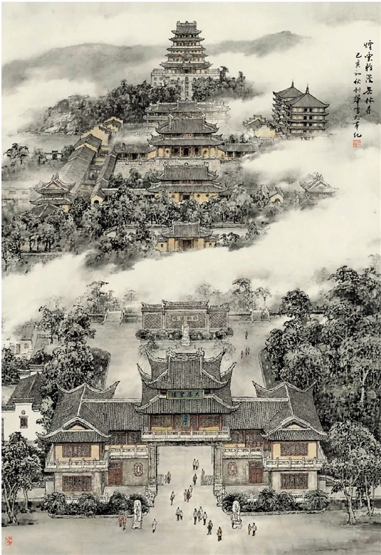 王利华 烟云轻漫岳林寺 142×96cm 2019年
