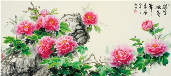 熊明 魏紫姚黄舞东风 150×80cm 国画