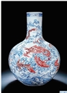 ▼清雍正 御制青花釉里红云海腾龙大天球瓶