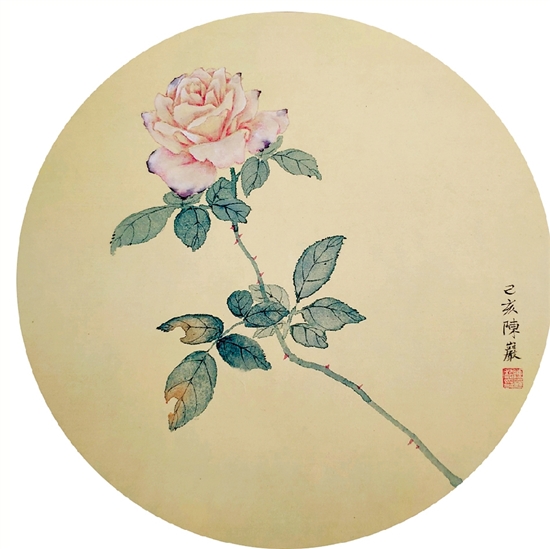 陈岩 花卉写生 直径28cm